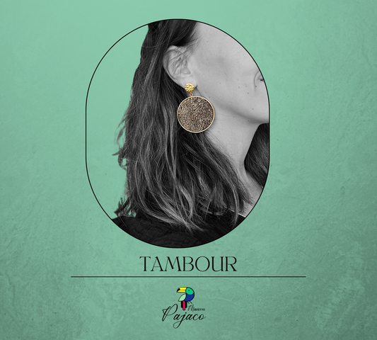 Boucles d'oreilles - Tambour - Camel tressage doré