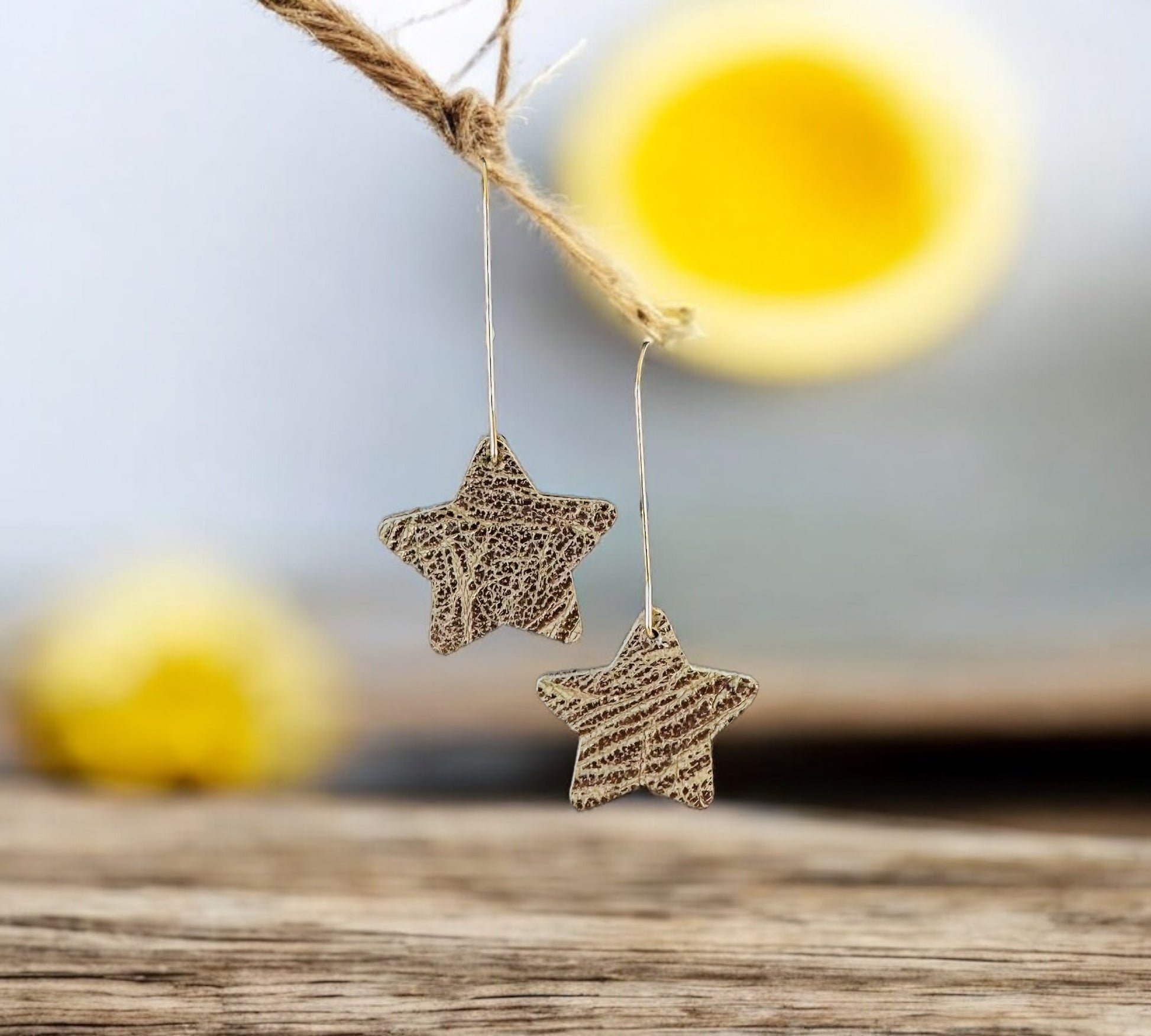 Boucles d'oreilles - Etoile filante cuir effet bois