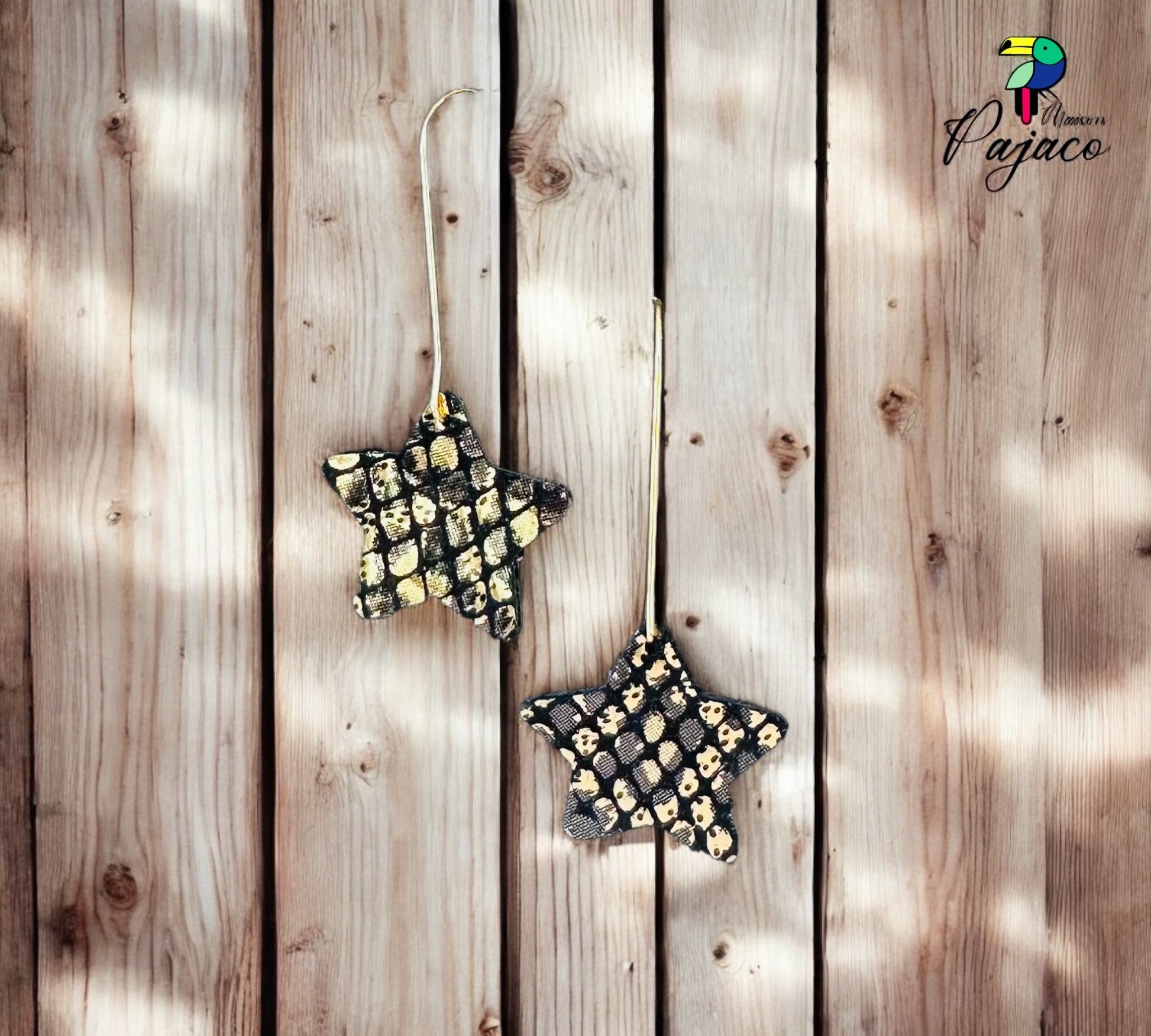 Boucles d'oreilles - Etoile filante losanger noir doré