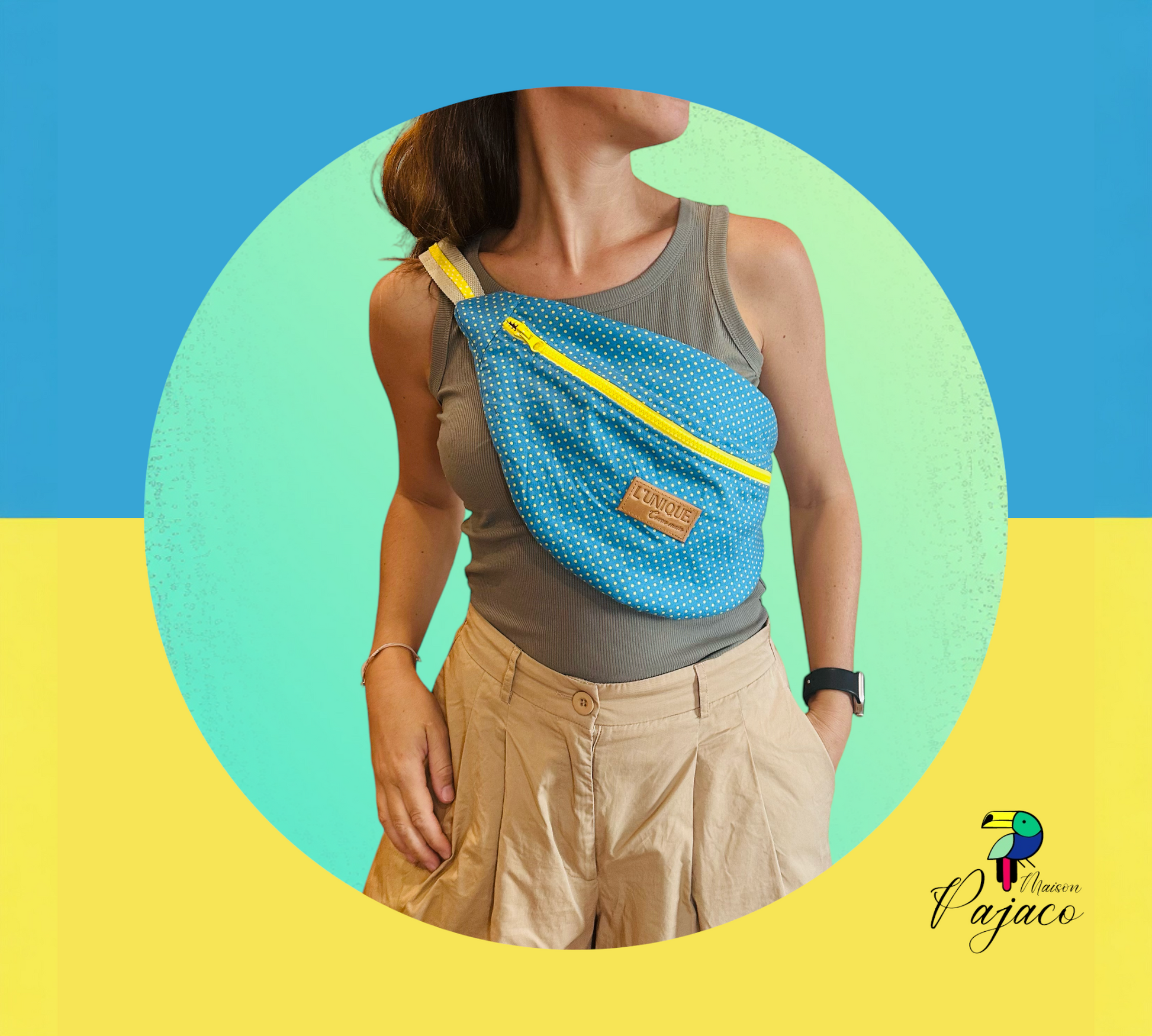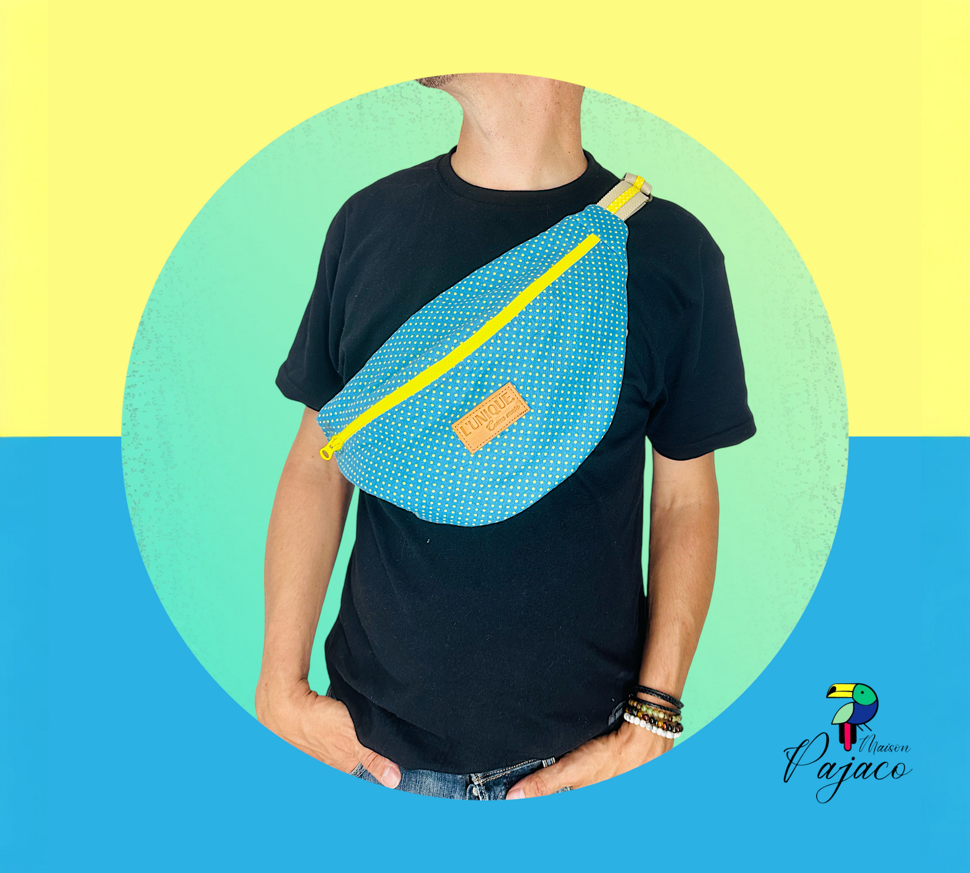 Banane L'Unique M - Bleue et jaune à ptits pois