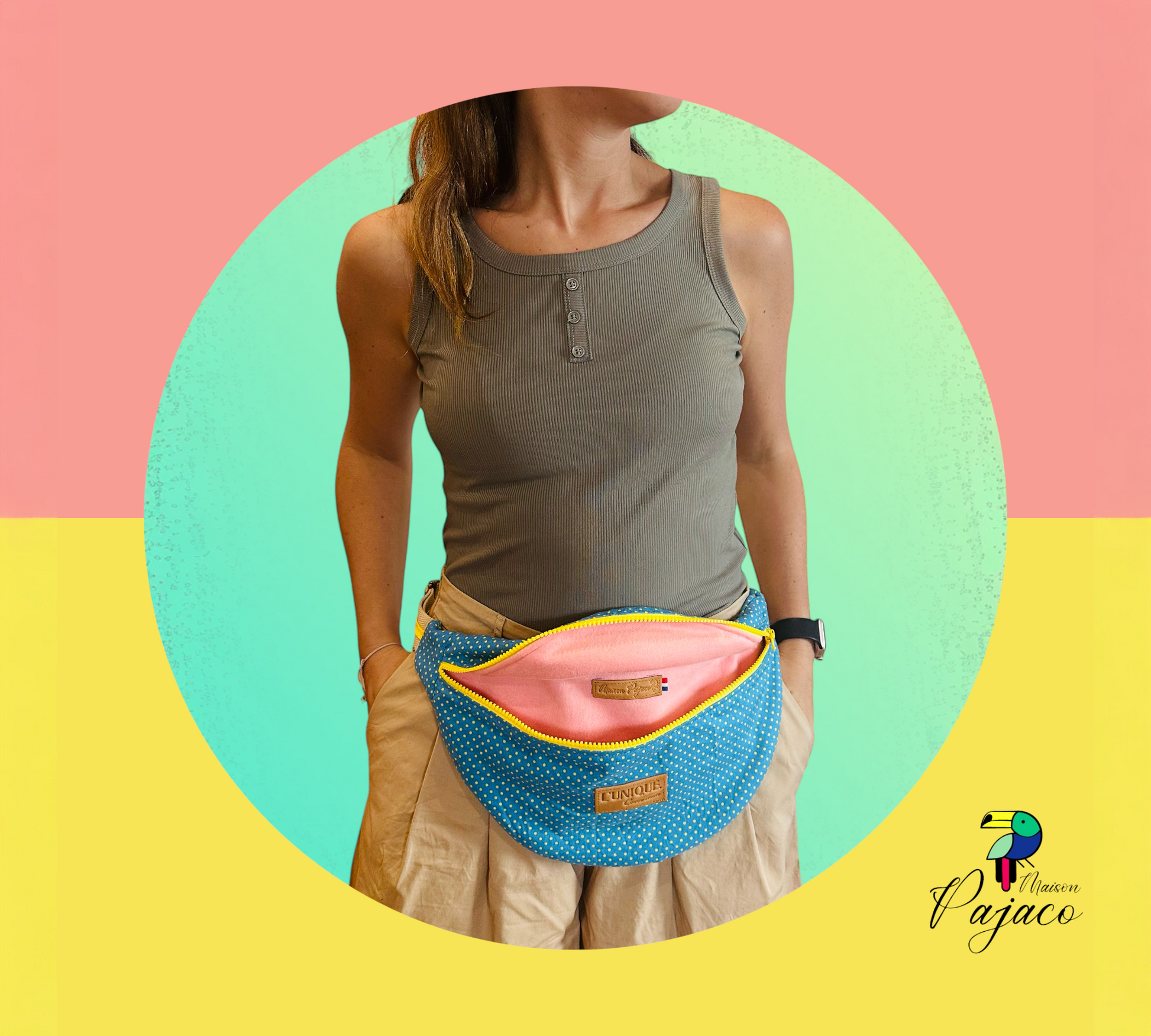 La banane L'Unique est réalisée à partir de coupon up-cyclé, elle donne vie à des tissus initialement destinées à être délaissés (chute de tissus, fin de serie…)