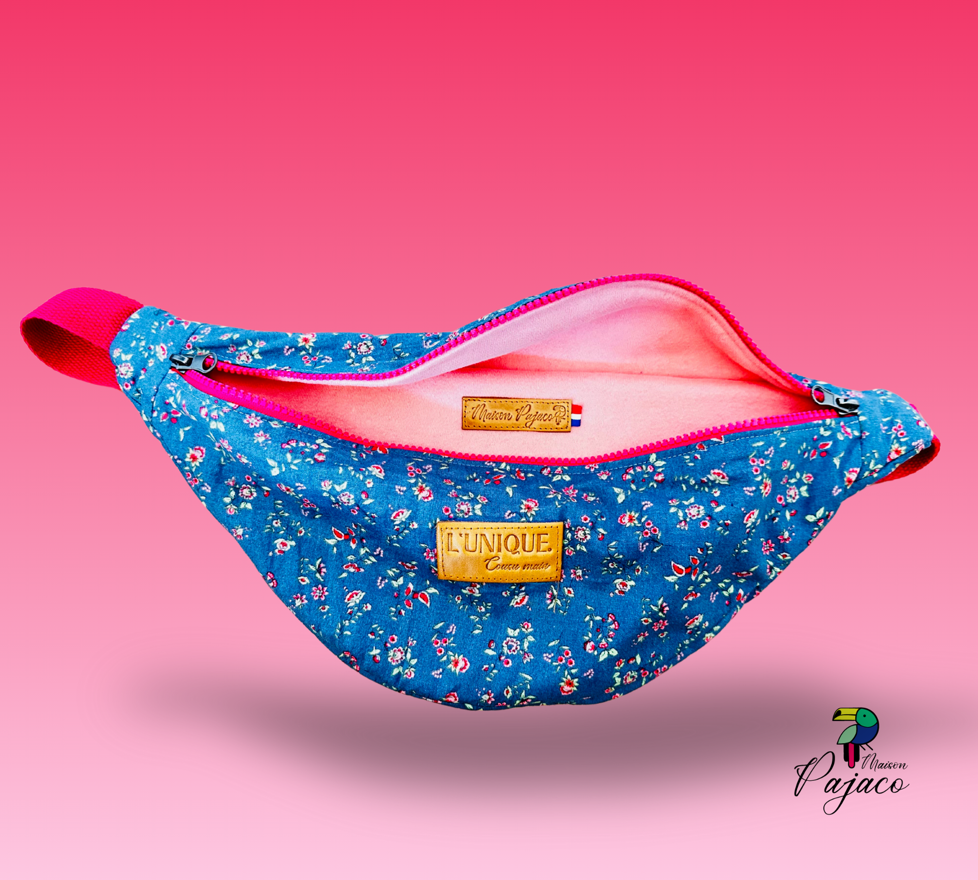 La banane L'Unique est réalisée à partir de coupon up-cyclé, elle donne vie à des tissus initialement destinées à être délaissés (chute de tissus, fin de serie…)
