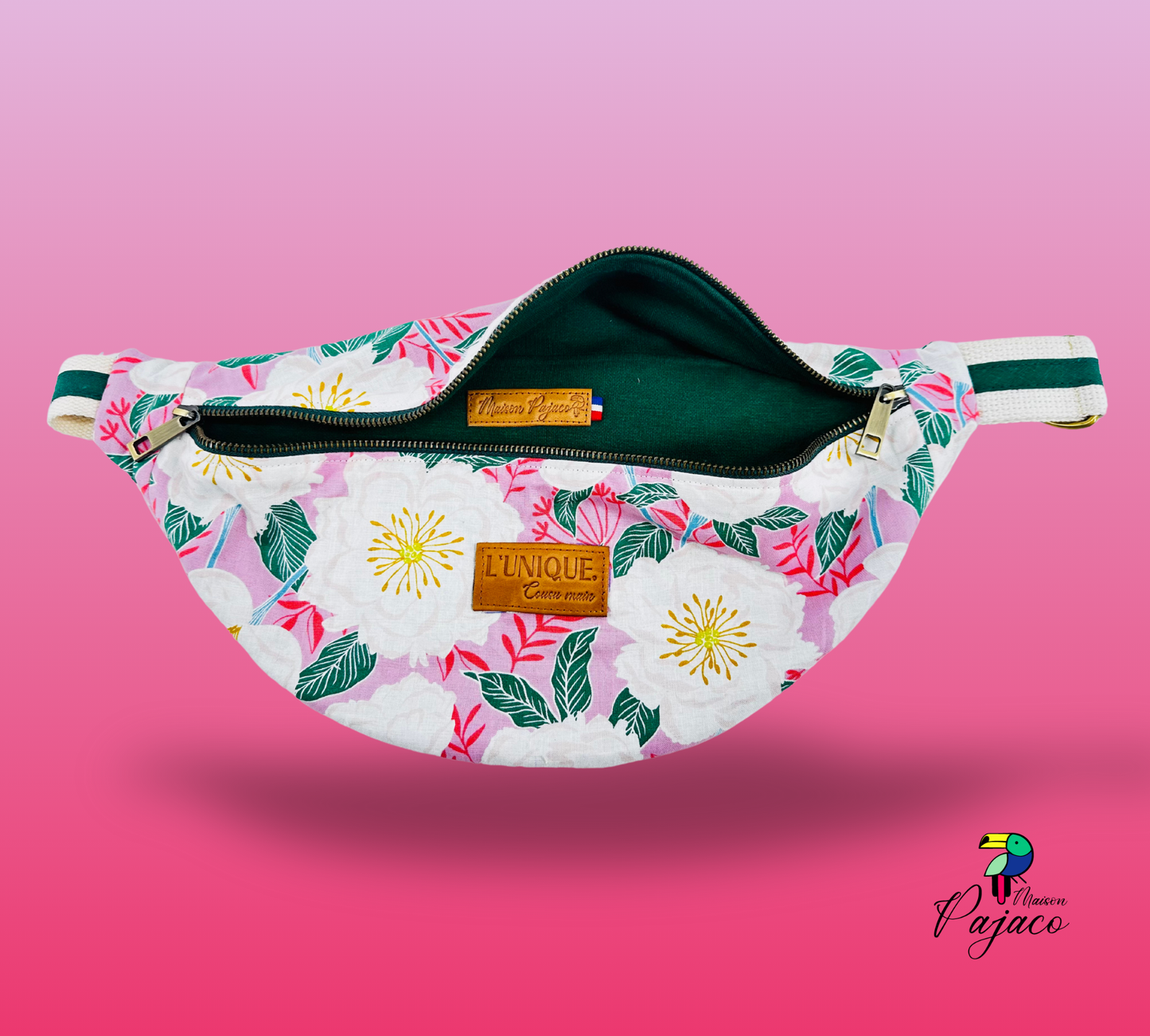 La banane L'Unique est réalisée à partir de coupon up-cyclé, elle donne vie à des tissus initialement destinées à être délaissés (chute de tissus, fin de serie…)