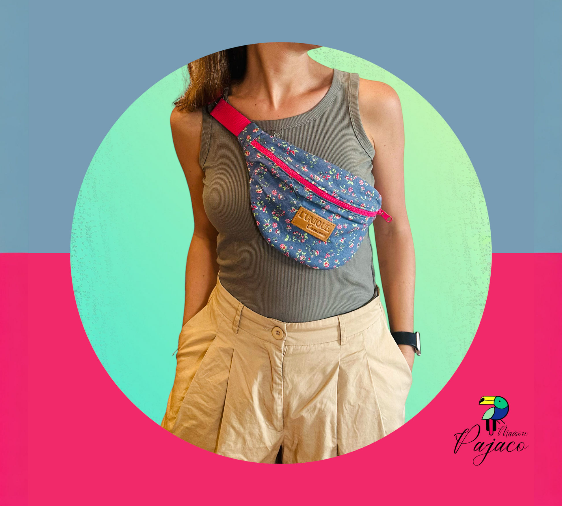 La banane L'Unique est réalisée à partir de coupon up-cyclé, elle donne vie à des tissus initialement destinées à être délaissés (chute de tissus, fin de serie…)