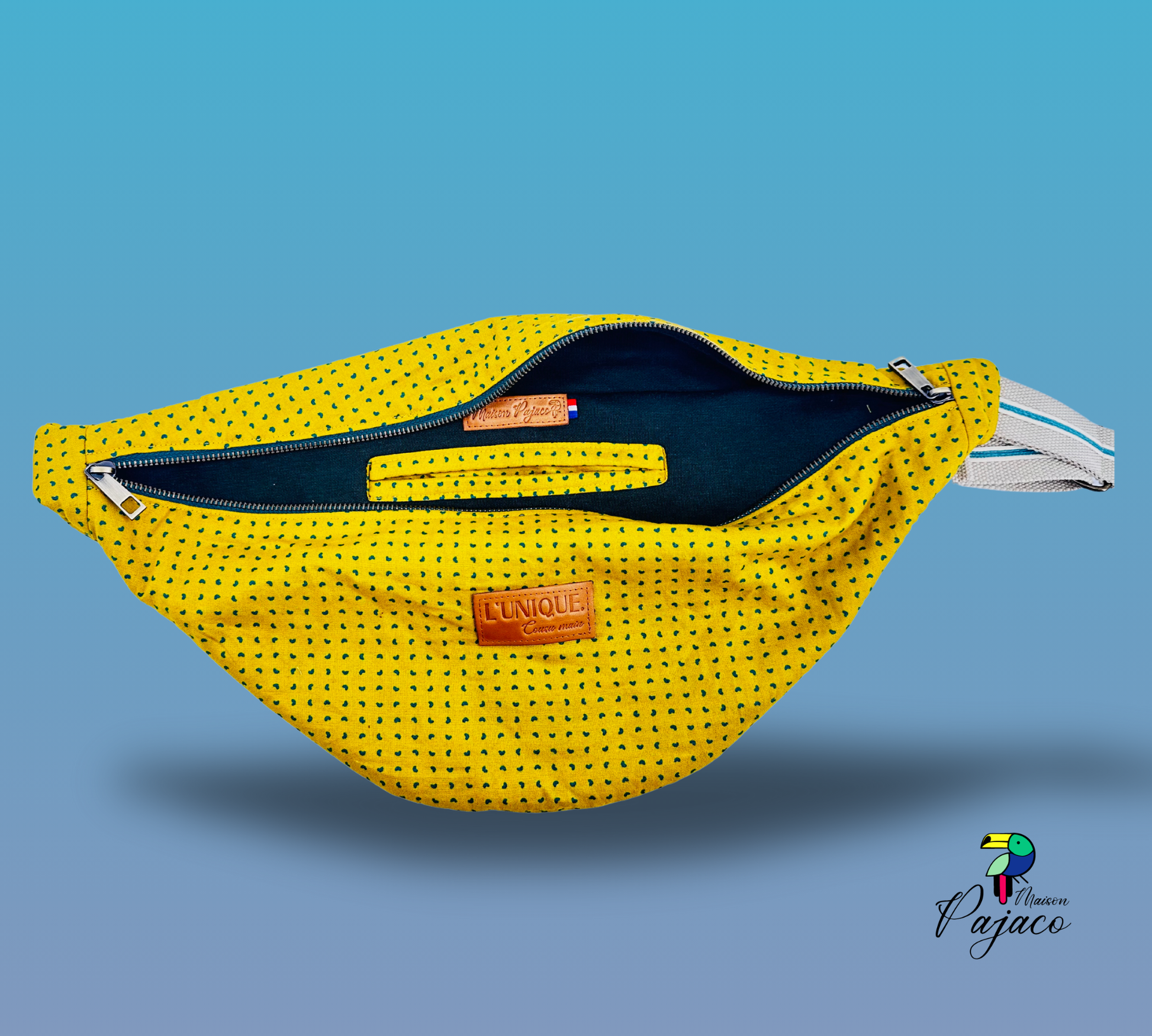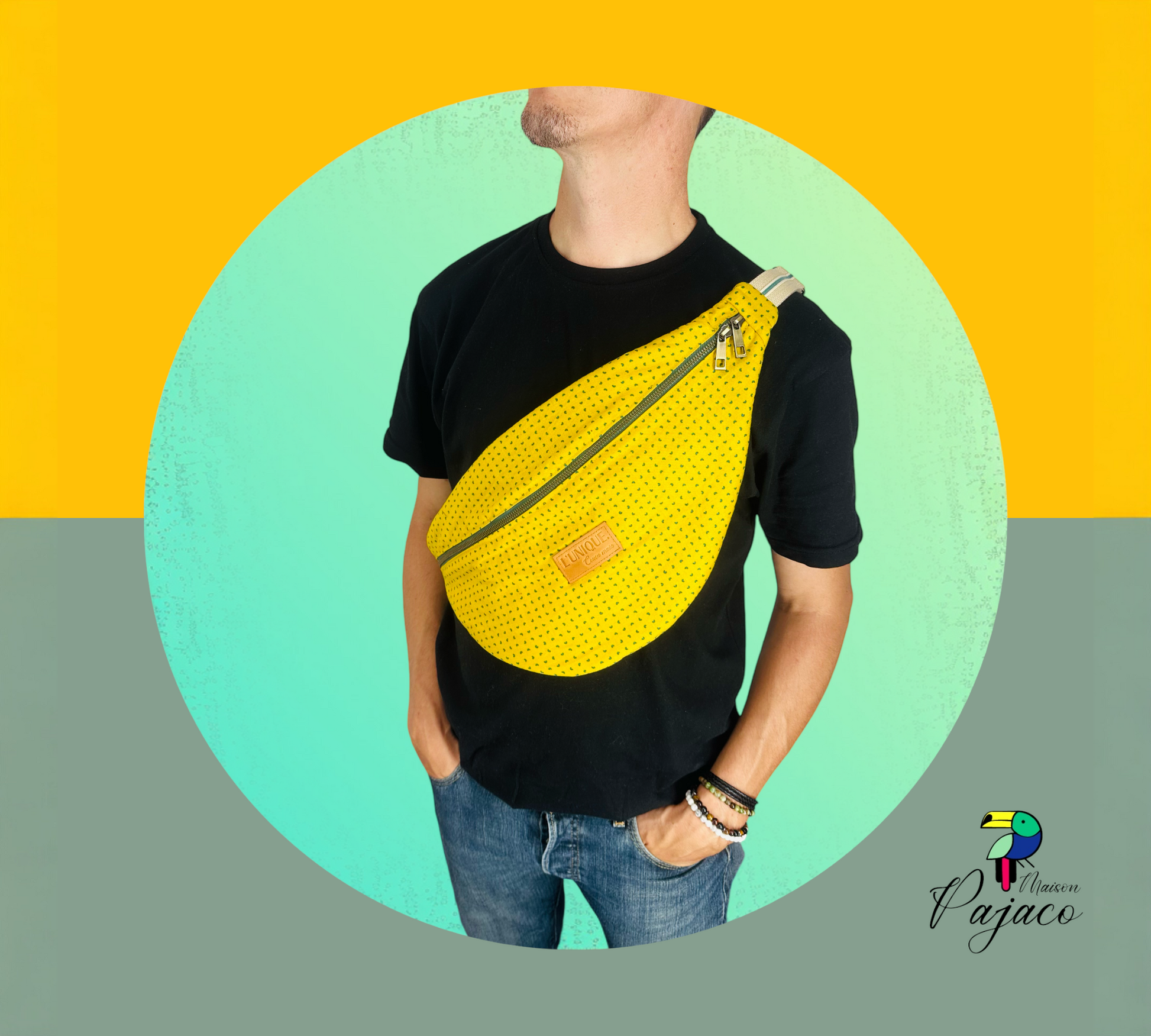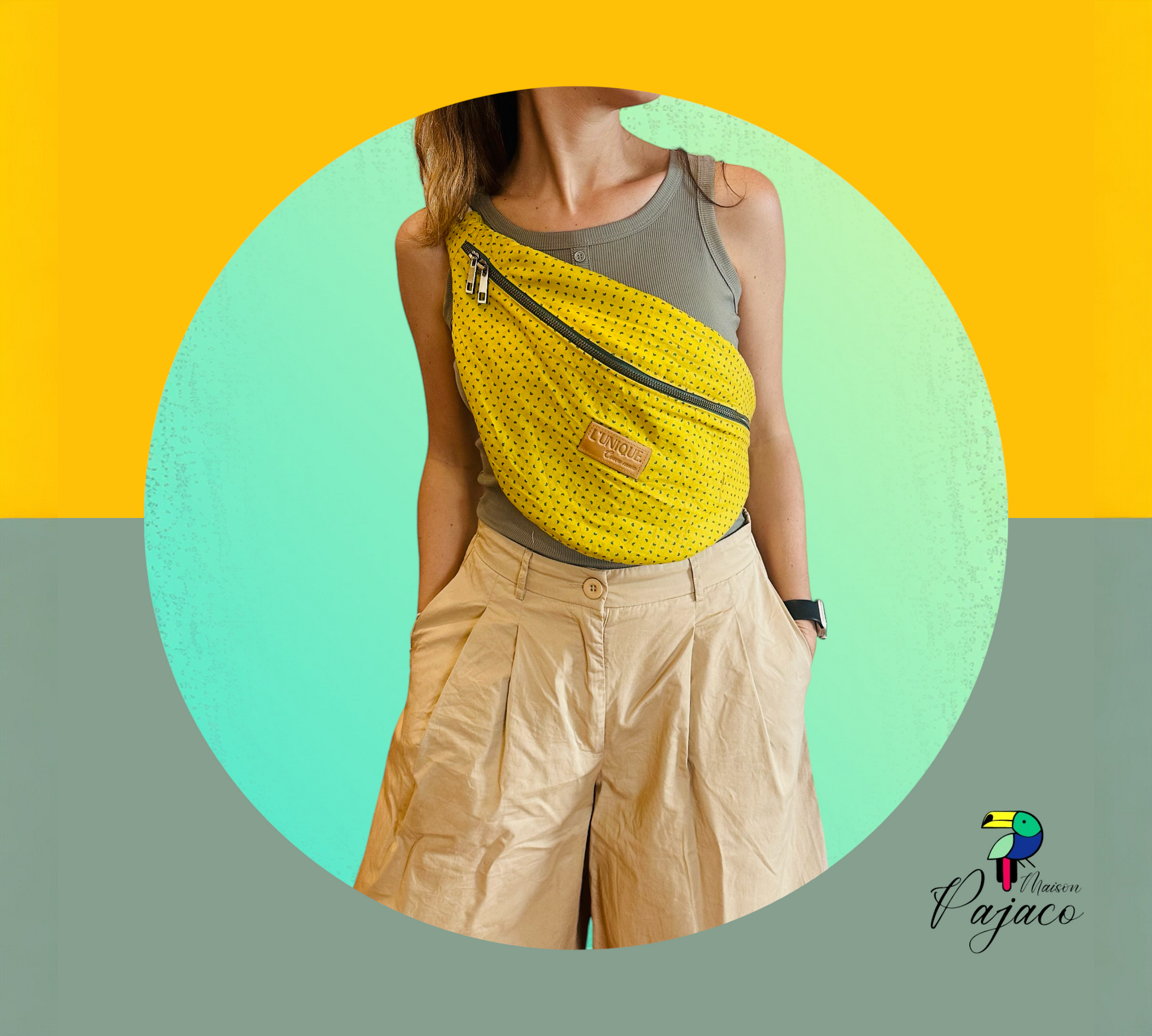 La banane L'Unique est réalisée à partir de coupon up-cyclé, elle donne vie à des tissus initialement destinées à être délaissés (chute de tissus, fin de serie…)