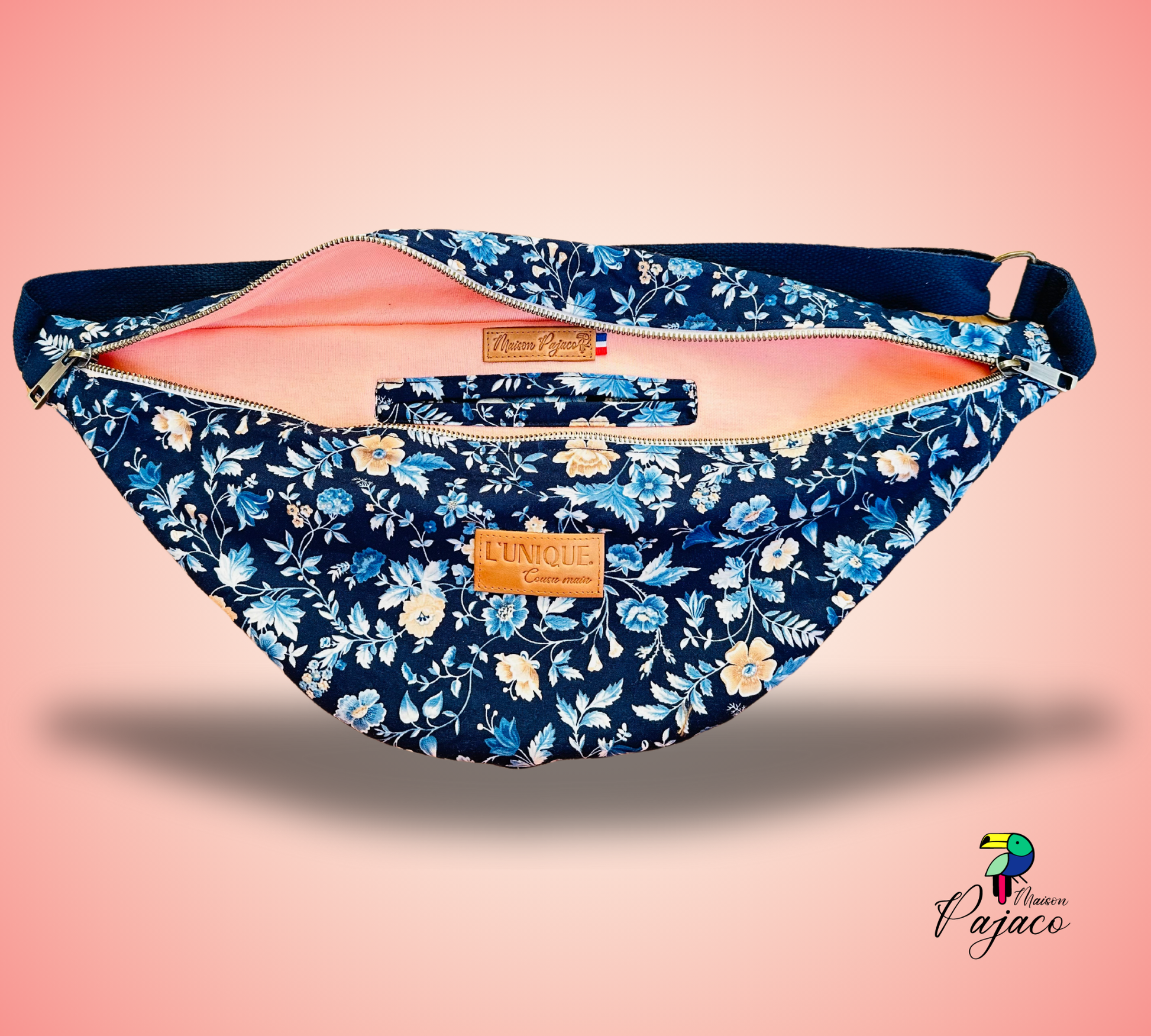 La banane L'Unique est réalisée à partir de coupon up-cyclé, elle donne vie à des tissus initialement destinées à être délaissés (chute de tissus, fin de serie…)