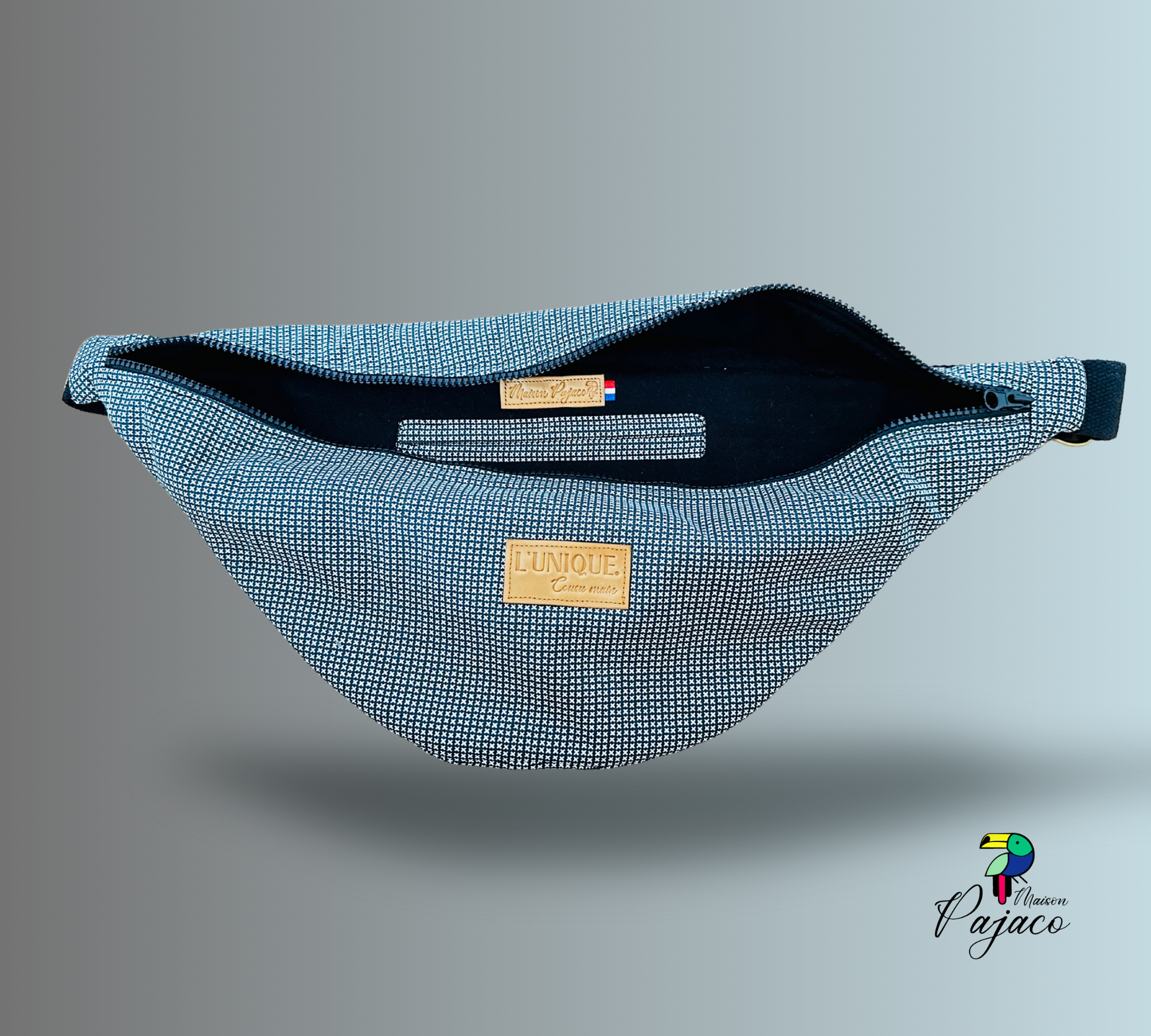 La banane L'Unique est réalisée à partir de coupon up-cyclé, elle donne vie à des tissus initialement destinées à être délaissés (chute de tissus, fin de serie…)