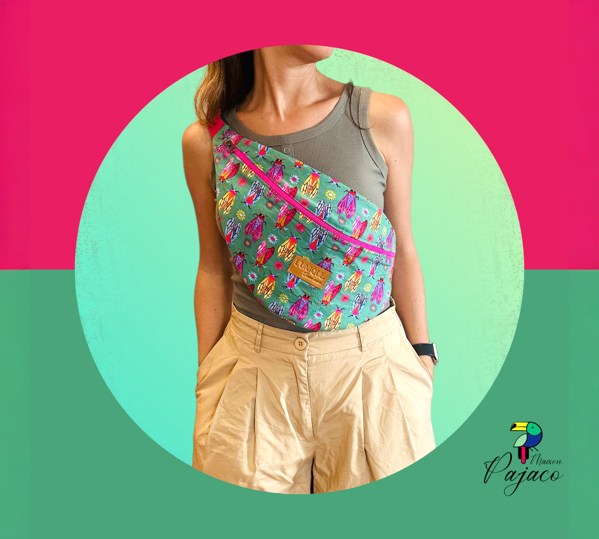 La banane L'Unique est réalisée à partir de coupon up-cyclé, elle donne vie à des tissus initialement destinées à être délaissés (chute de tissus, fin de serie…)