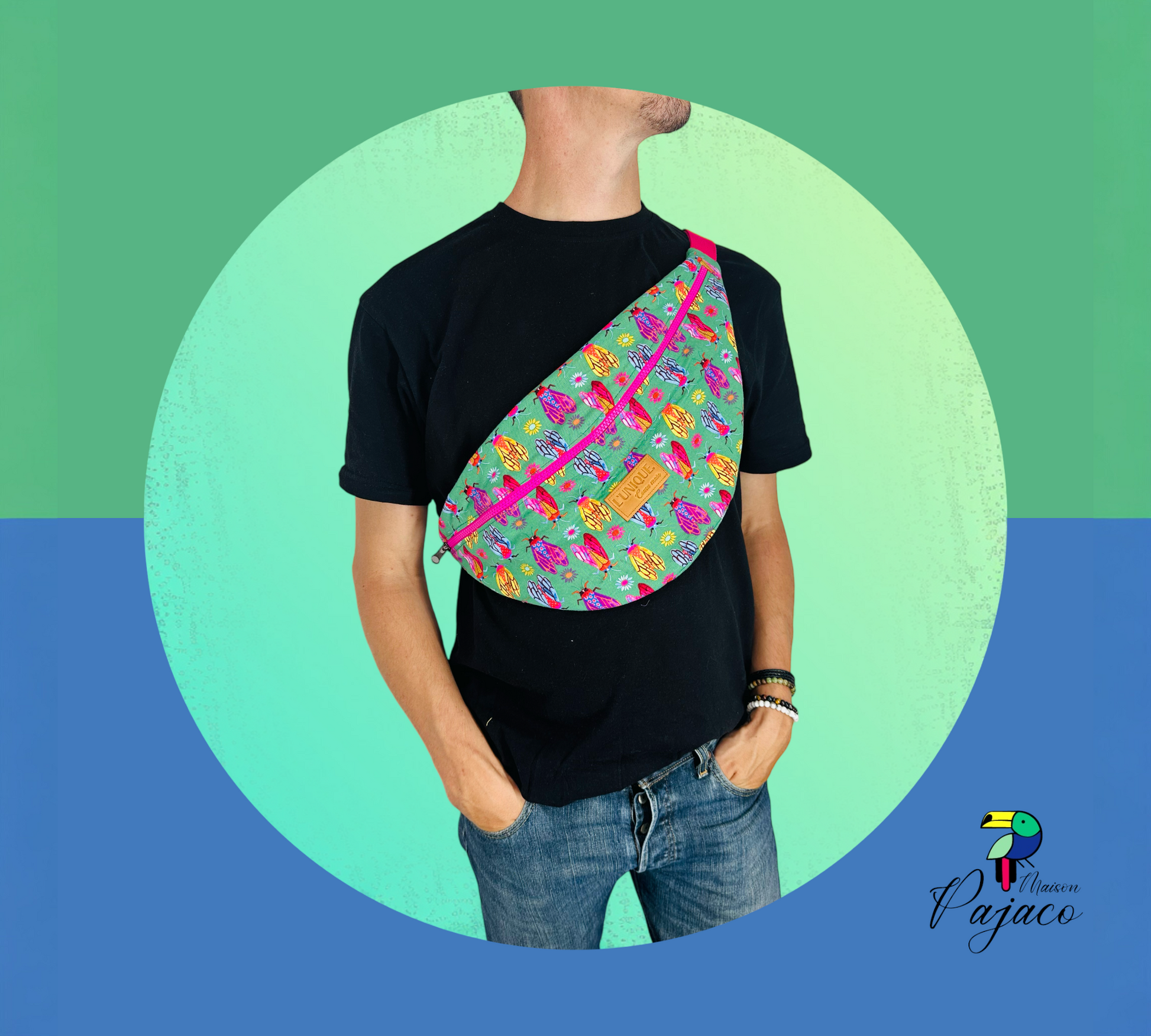 Ajoutez une touche d’éclat à votre tenue avec ce sac banane unique, fait main, qui respire la couleur et l'originalité !
