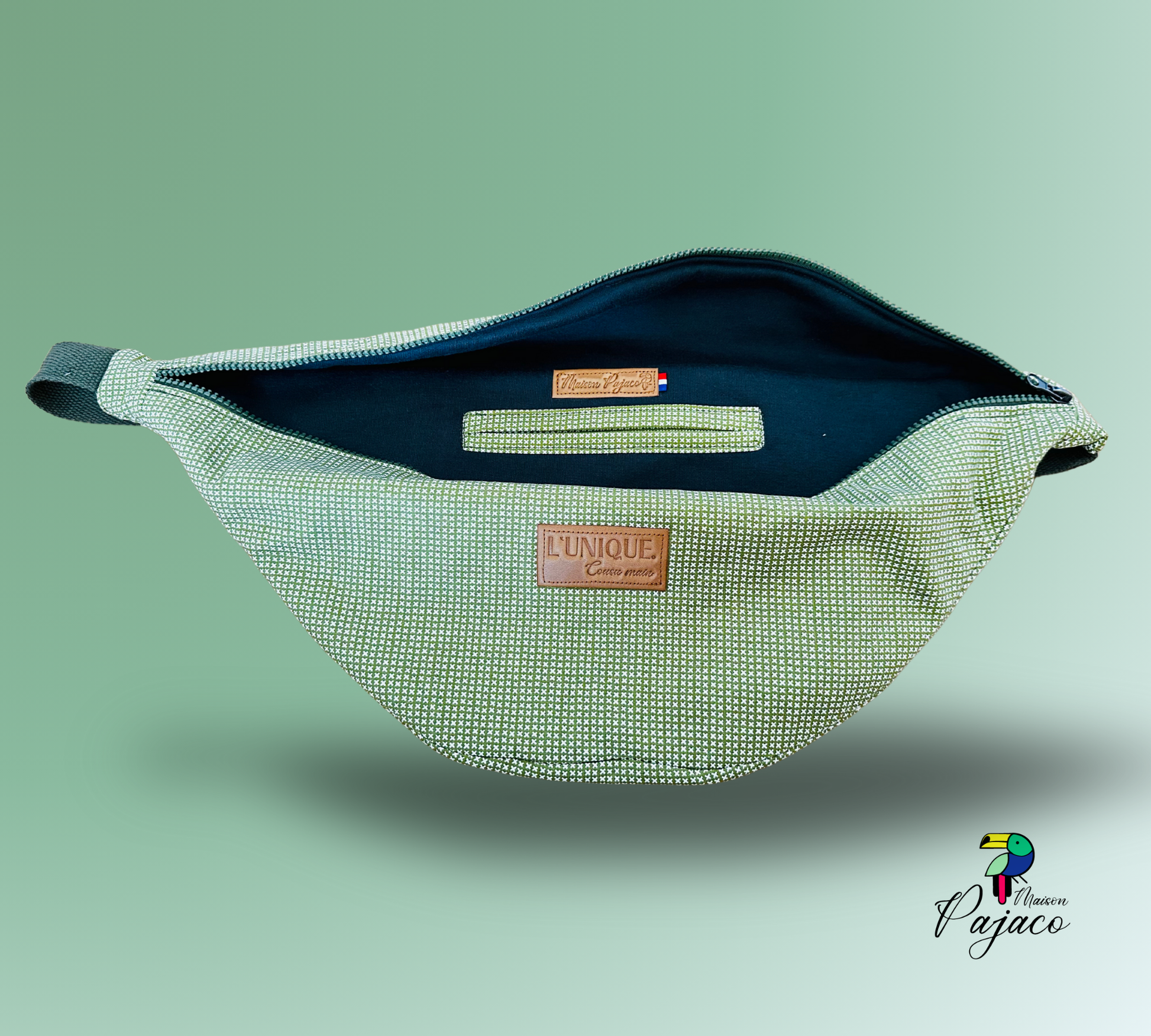 La banane L'Unique est réalisée à partir de coupon up-cyclé, elle donne vie à des tissus initialement destinées à être délaissés (chute de tissus, fin de serie…)