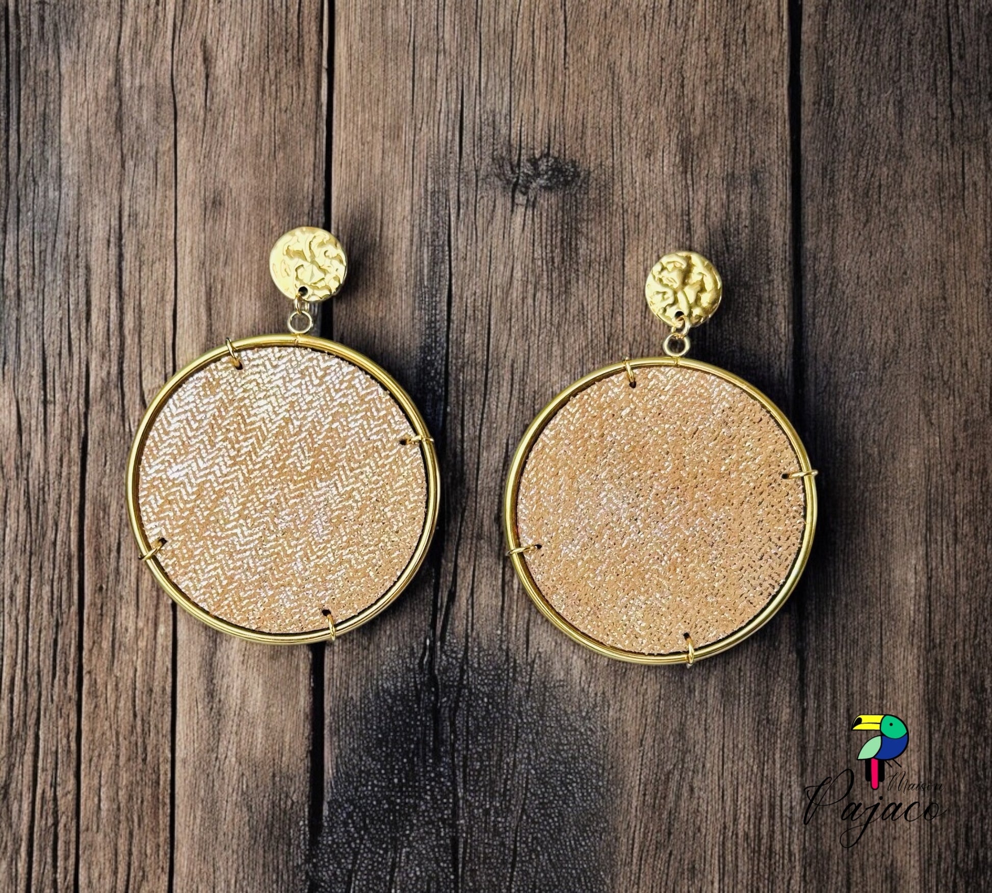 Boucles d'oreilles - Tambour - Camel tressage doré