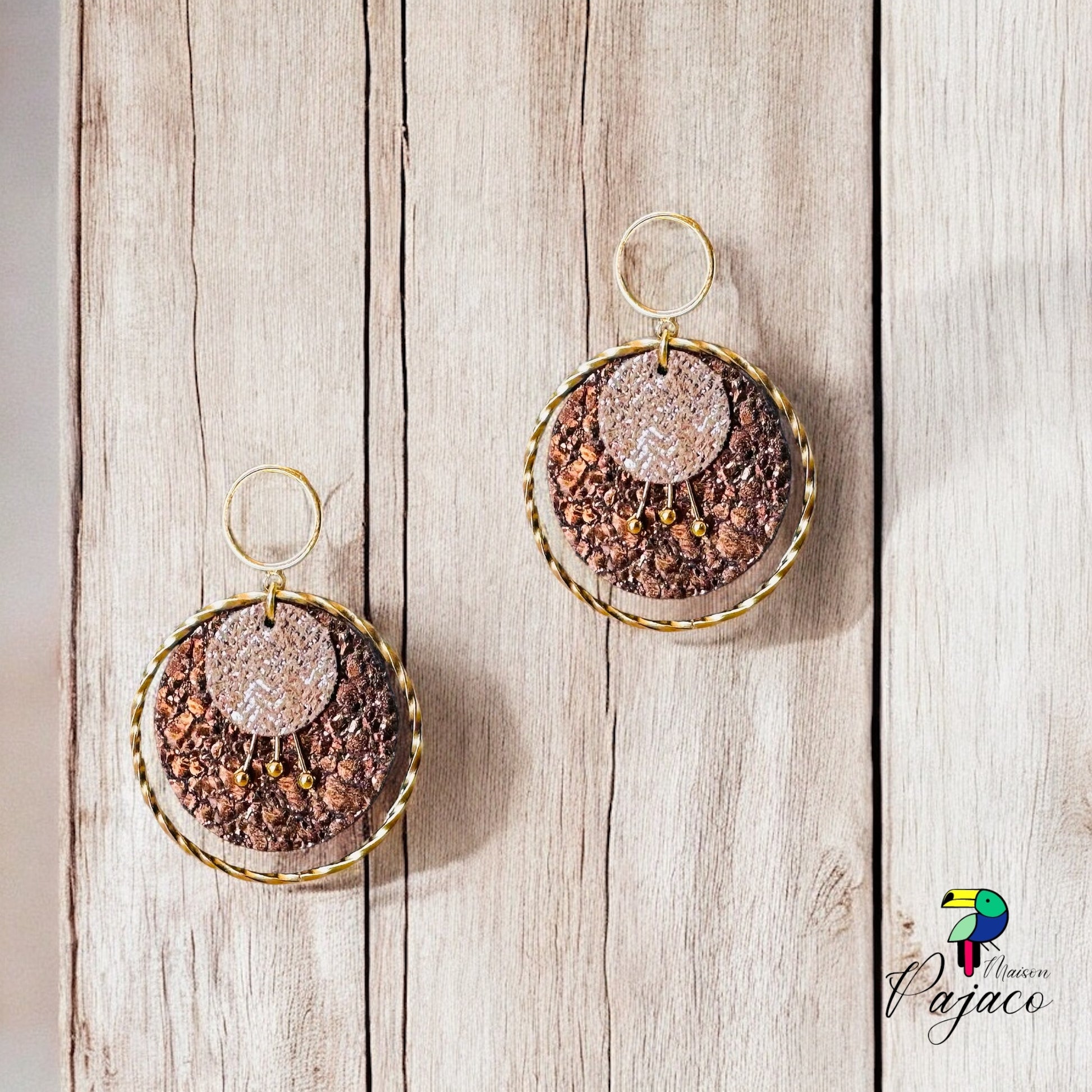 Boucles d'oreilles - Flores (3 cm) - Camel doré et cuivre