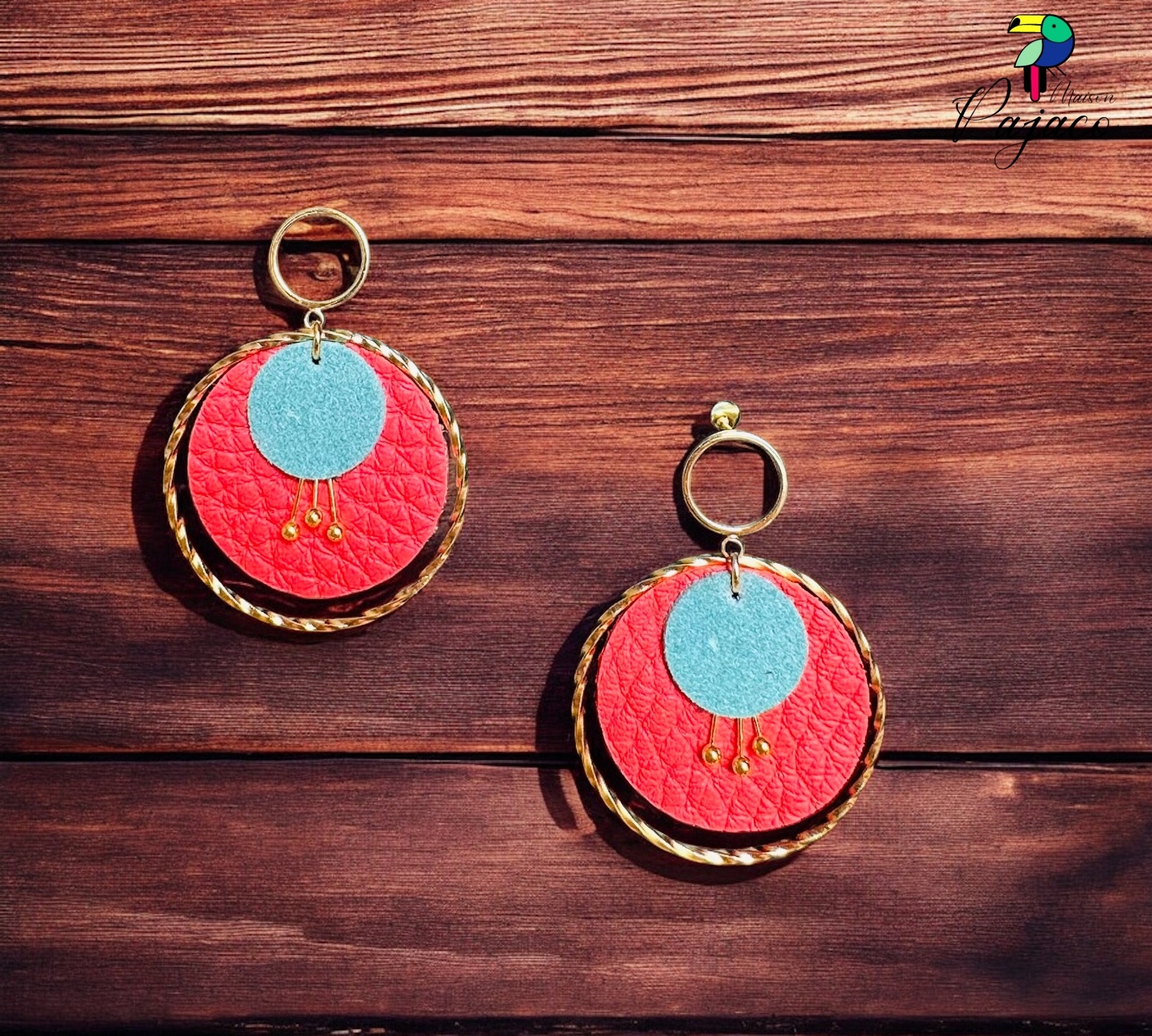 Matériaux : Cuir upcyclé. Anneau diamètre 3cm. Attache plaqué or 18 carats