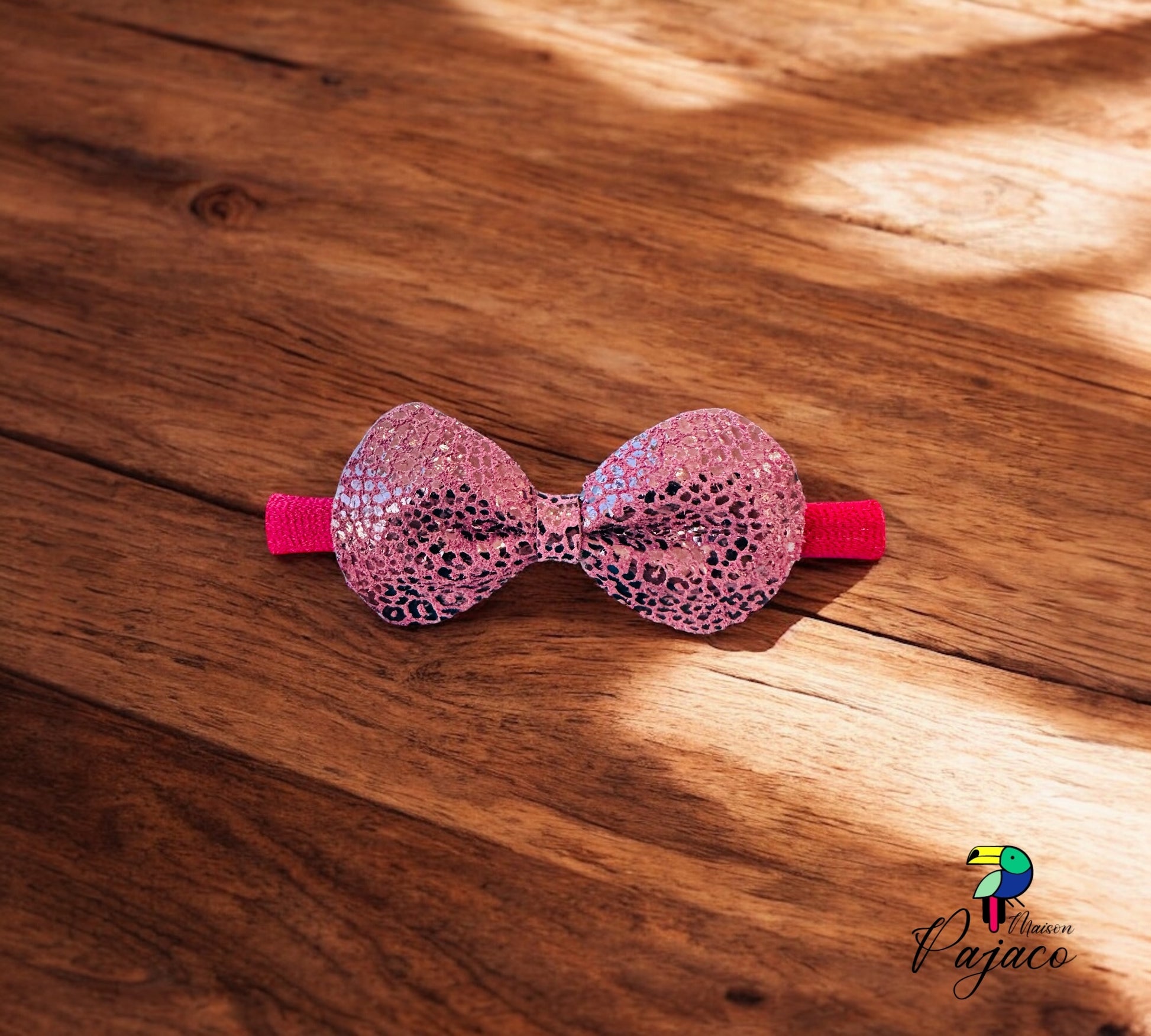Elastique cheveux - Noeud cuir Rose léopard