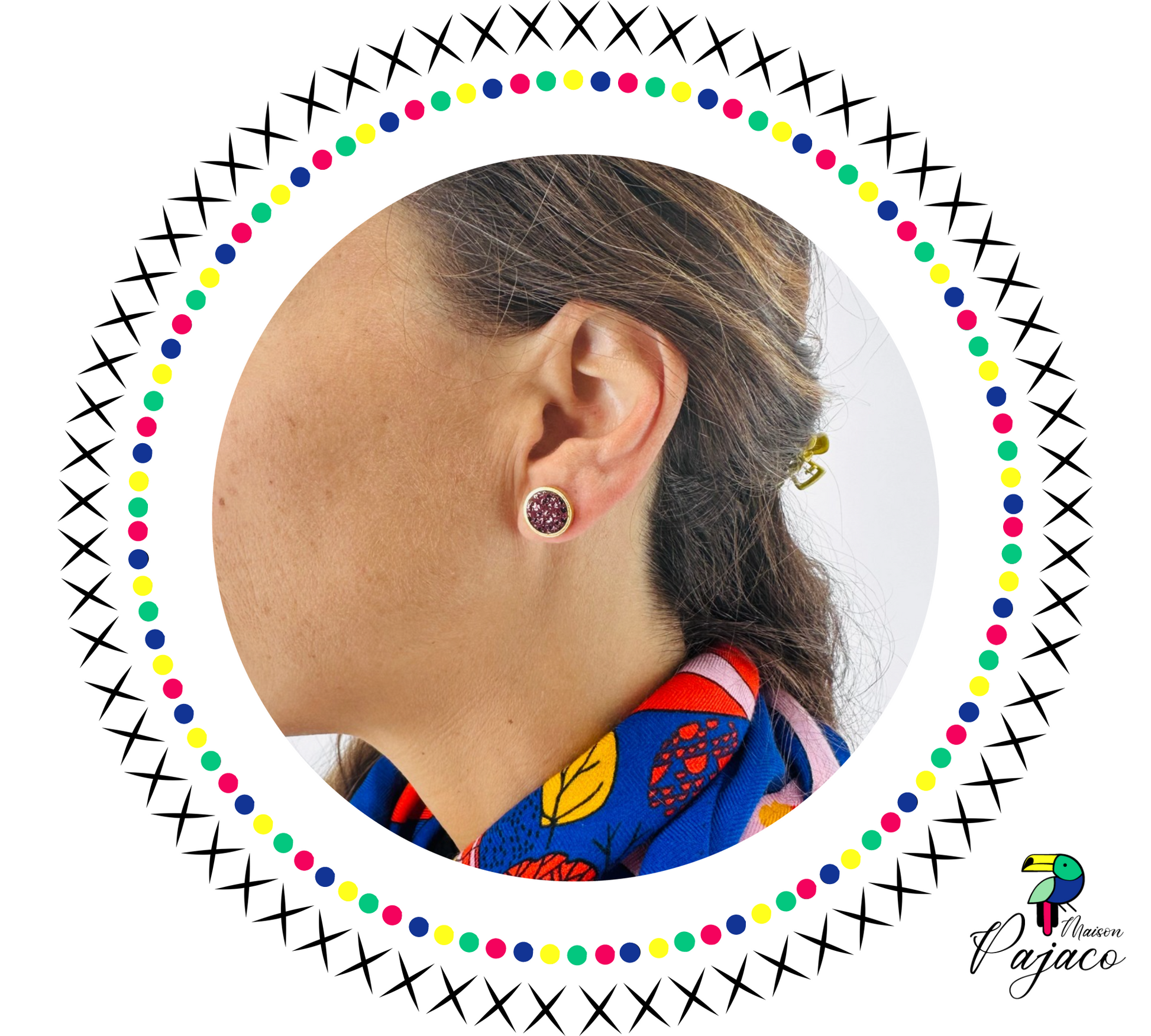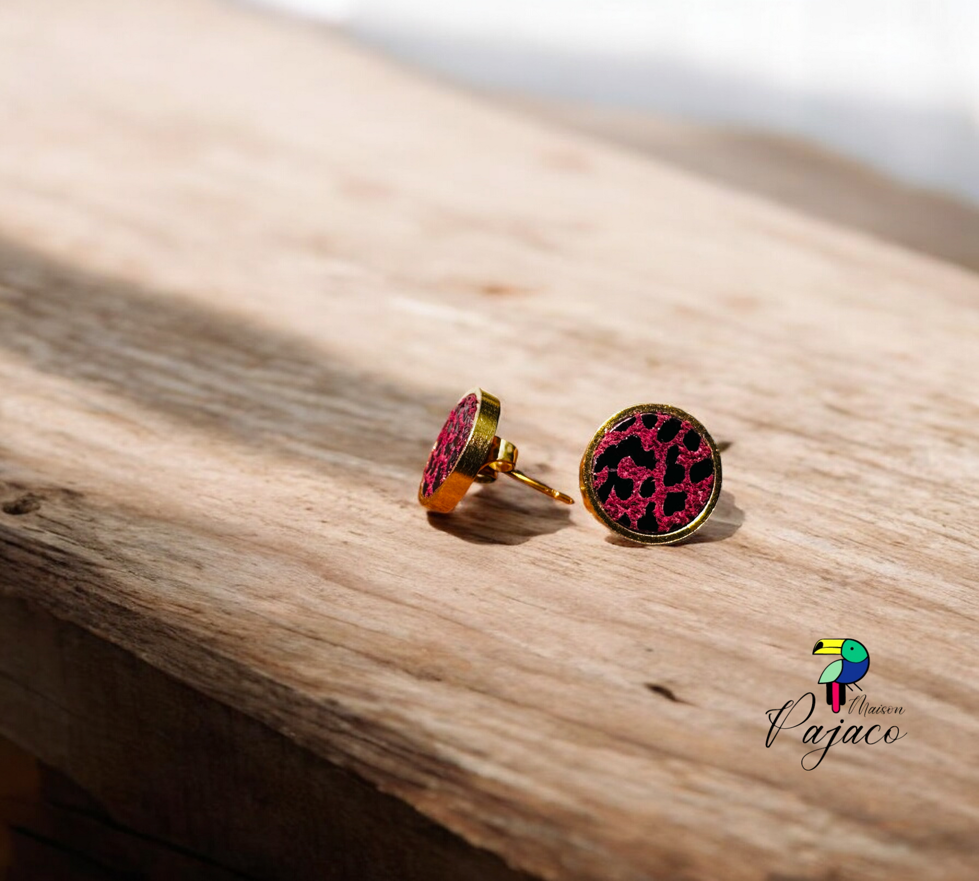 Puces d’oreilles dorées, fabriquées à la main avec des cuirs recyclés.