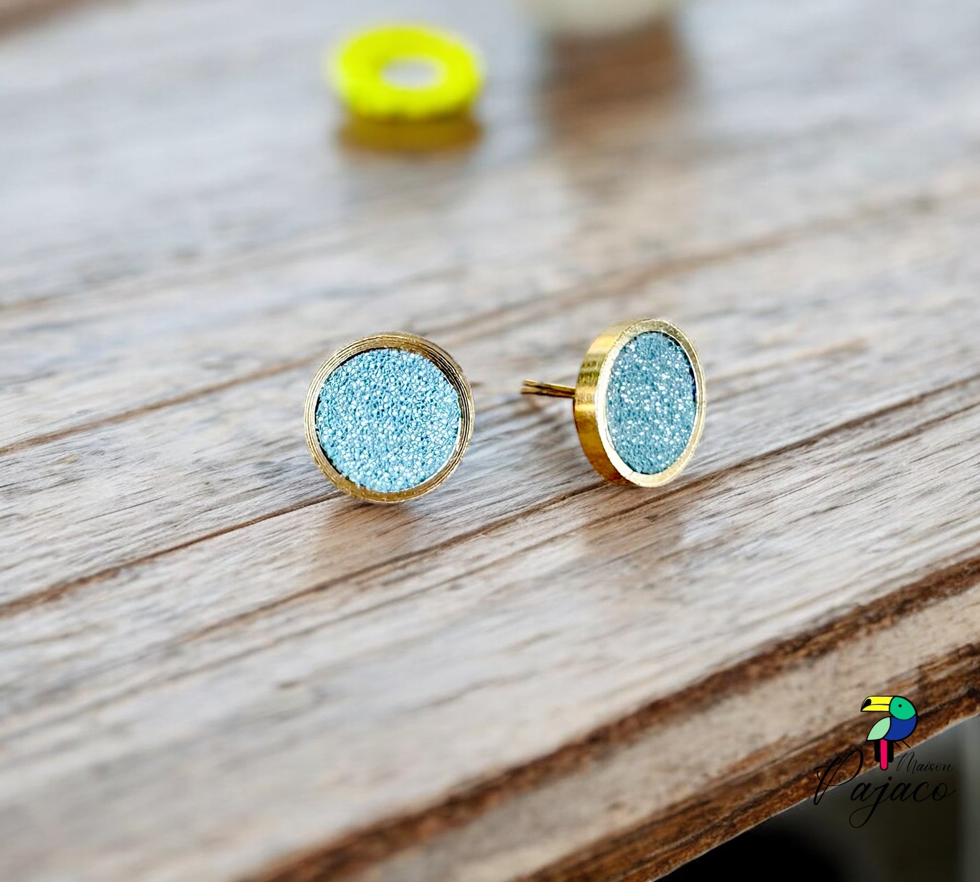 Puces d’oreilles dorées, fabriquées à la main avec des cuirs recyclés.