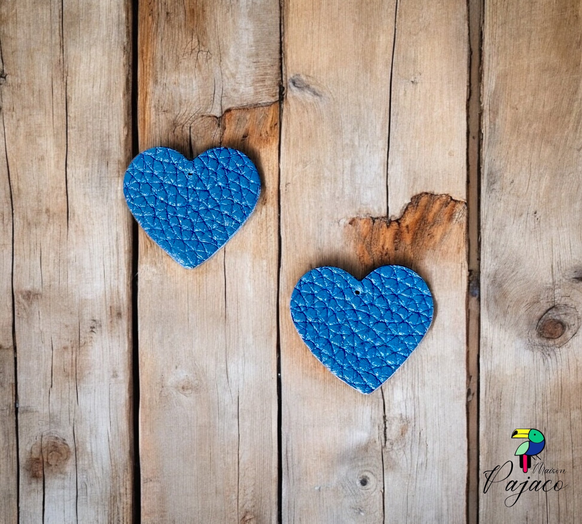 Recharge en cuir boucles d'oreilles coeur léger - Bleu mat