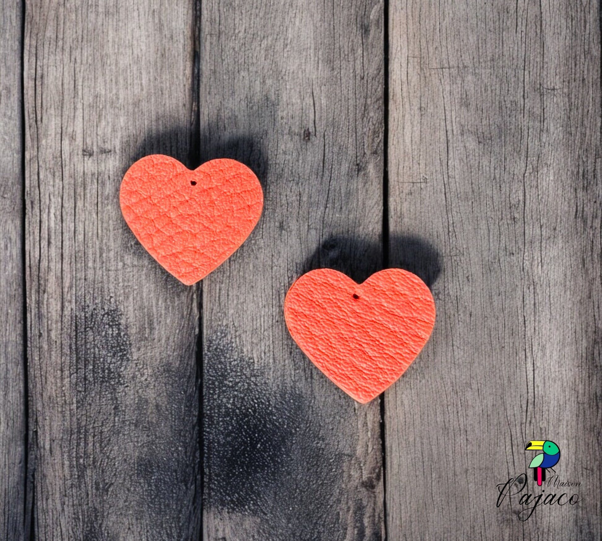 Recharge en cuir boucles d'oreilles coeur léger - Corail