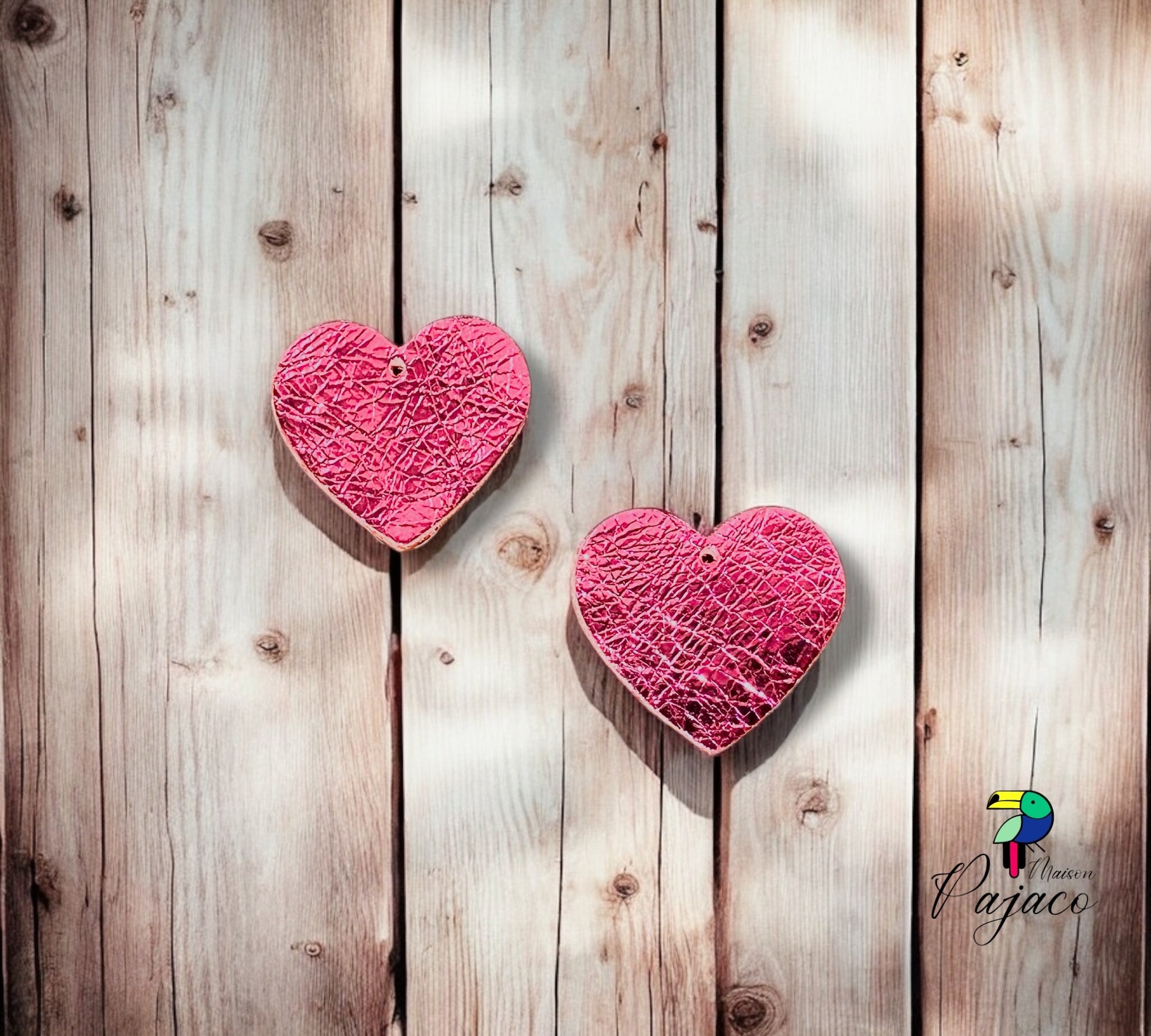 Recharge en cuir boucles d'oreilles coeur léger - Rose électrique