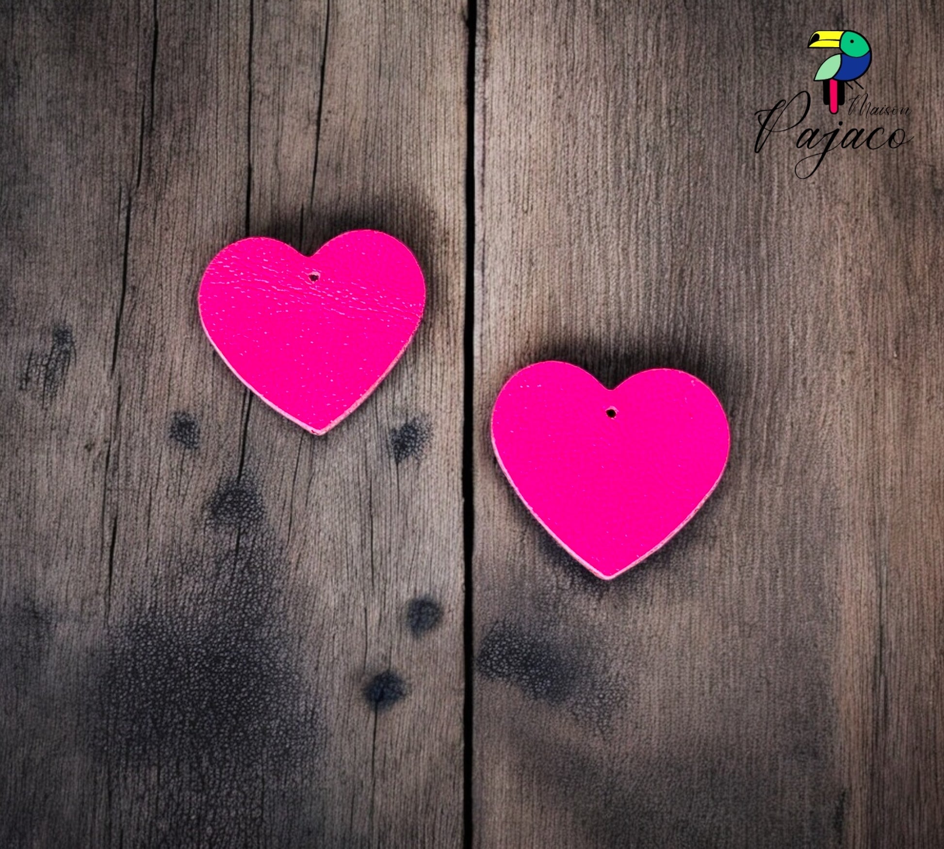 Recharge en cuir boucles d'oreilles coeur léger - Rose violet