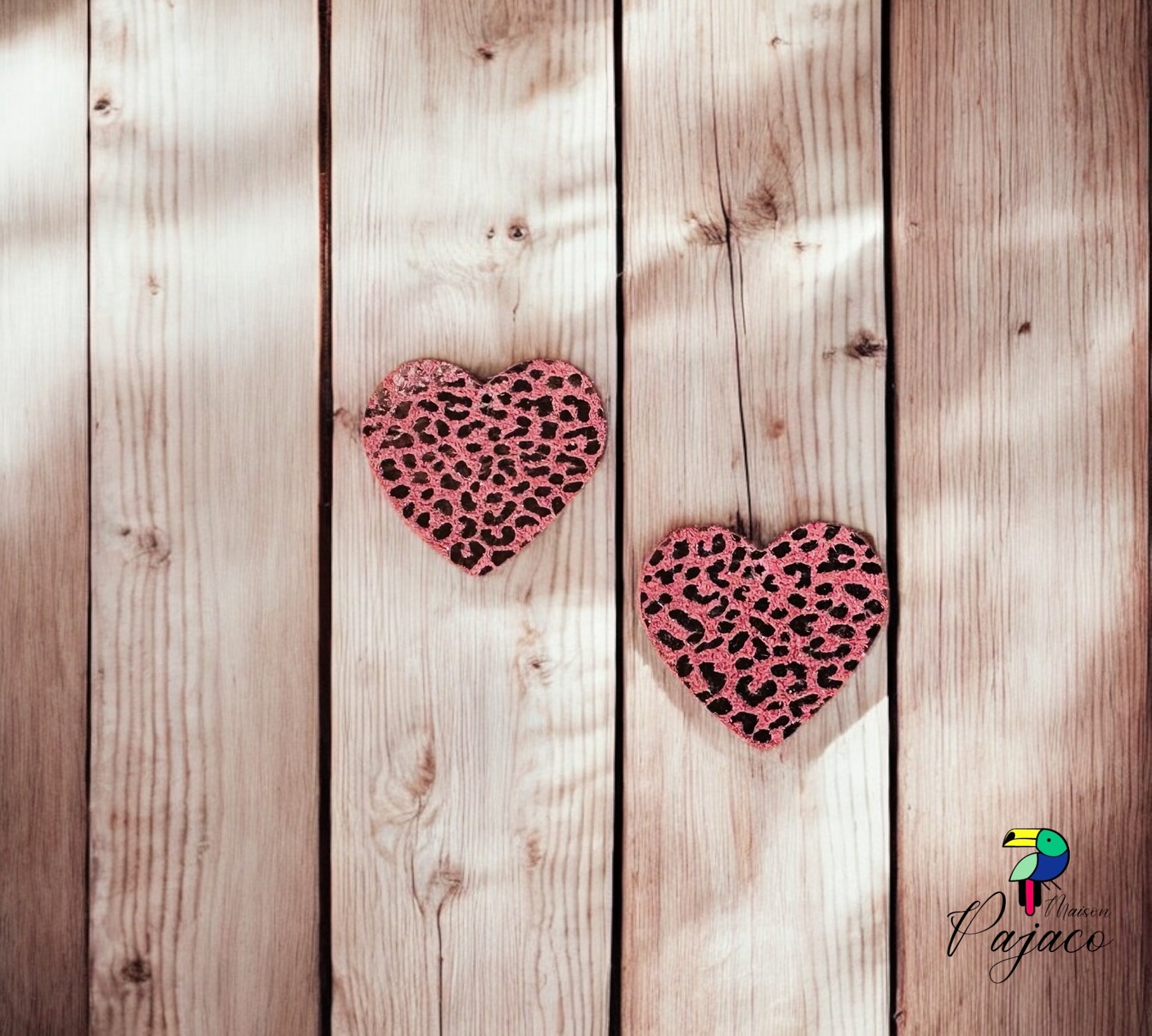 Recharge en cuir boucles d'oreilles coeur léger - Violet léopard